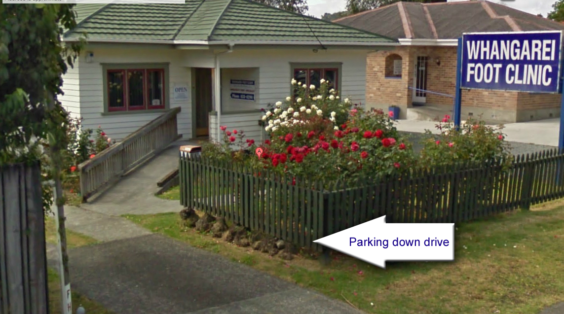 Off street parking is available behind the foot clinic and also available at the front by the sign and down the side of the building.